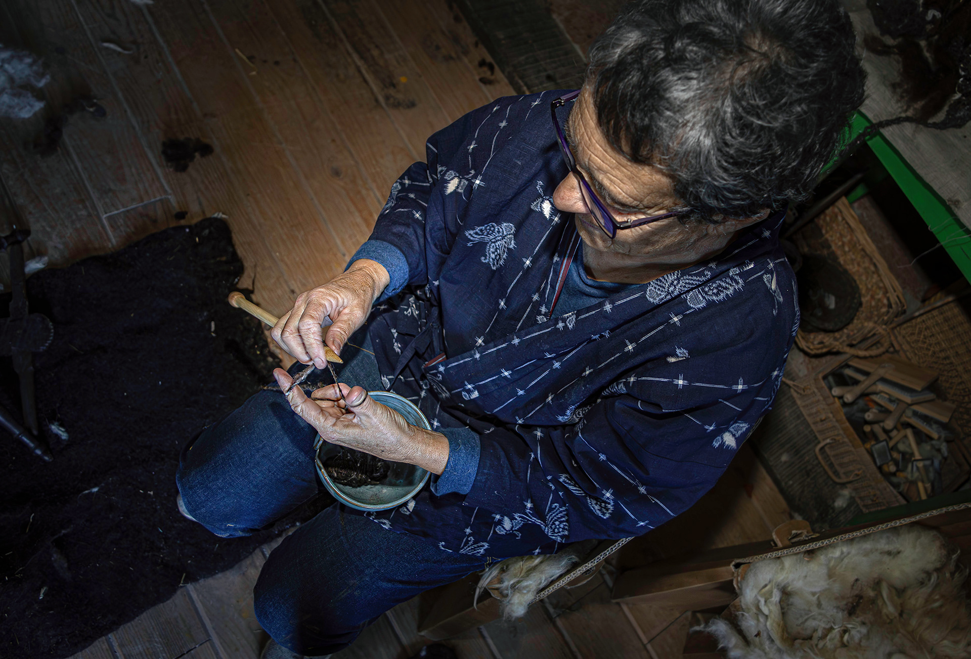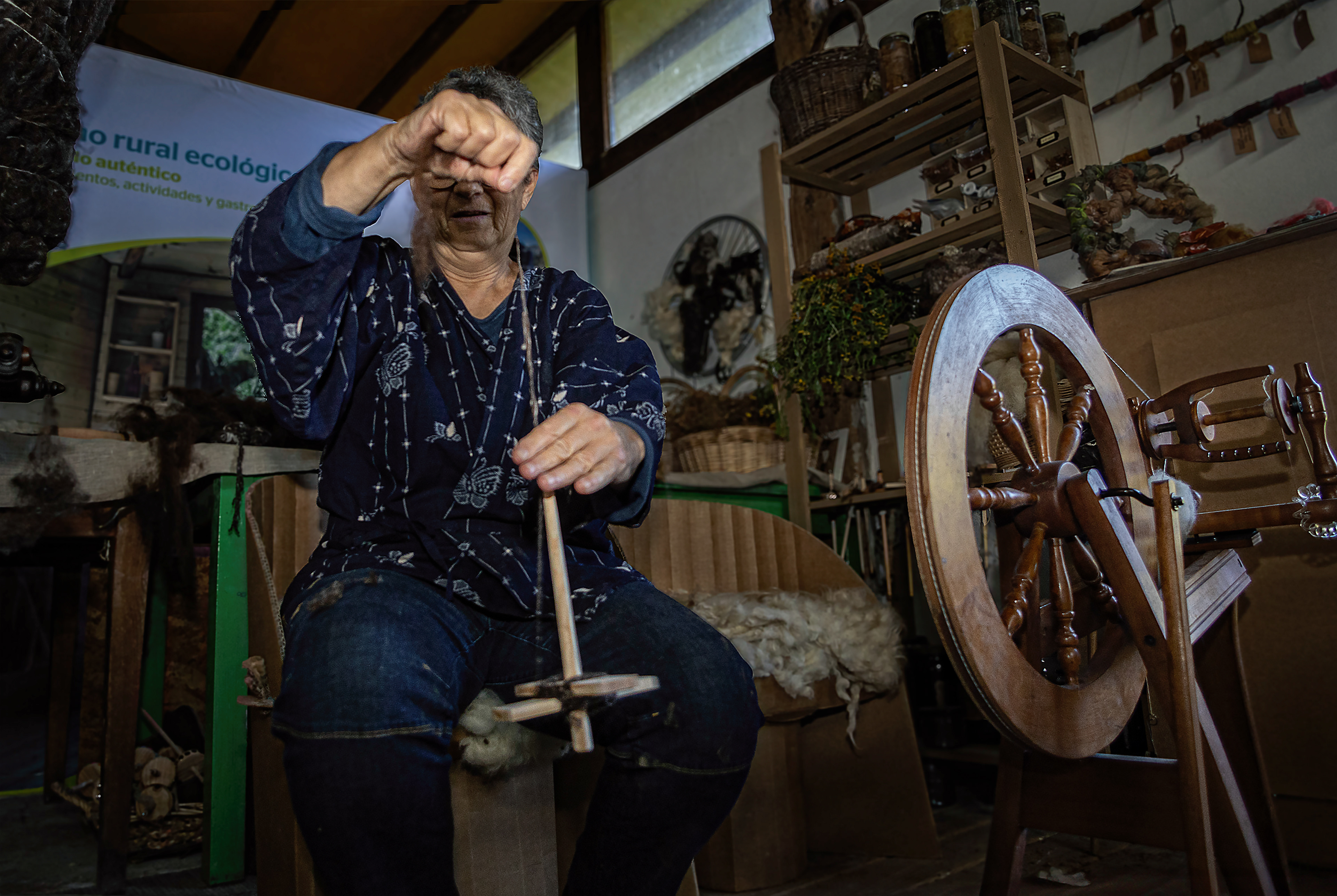 Tras ese proceso solo queda el hilar, bien con la rueca o el huso de mano.