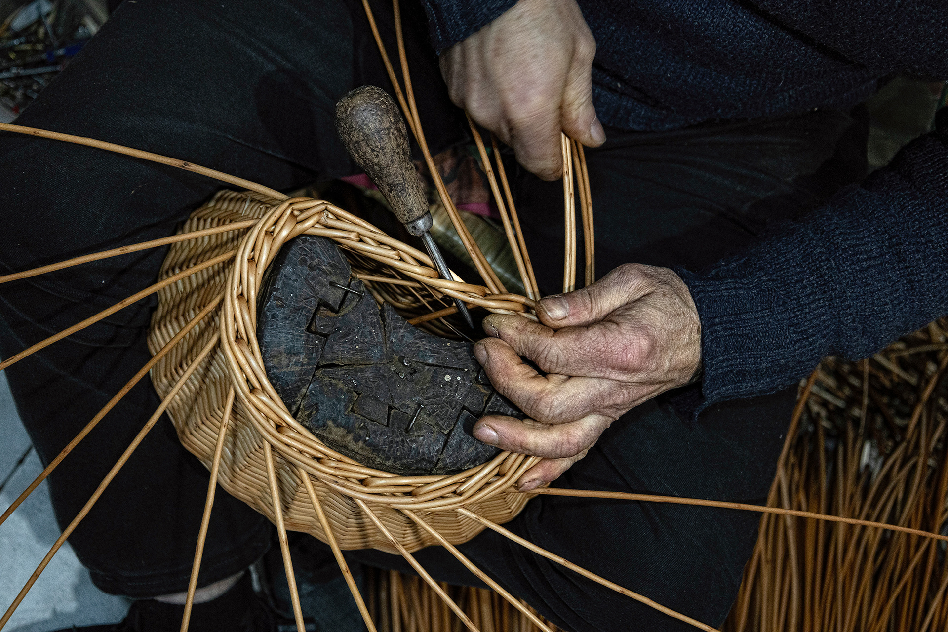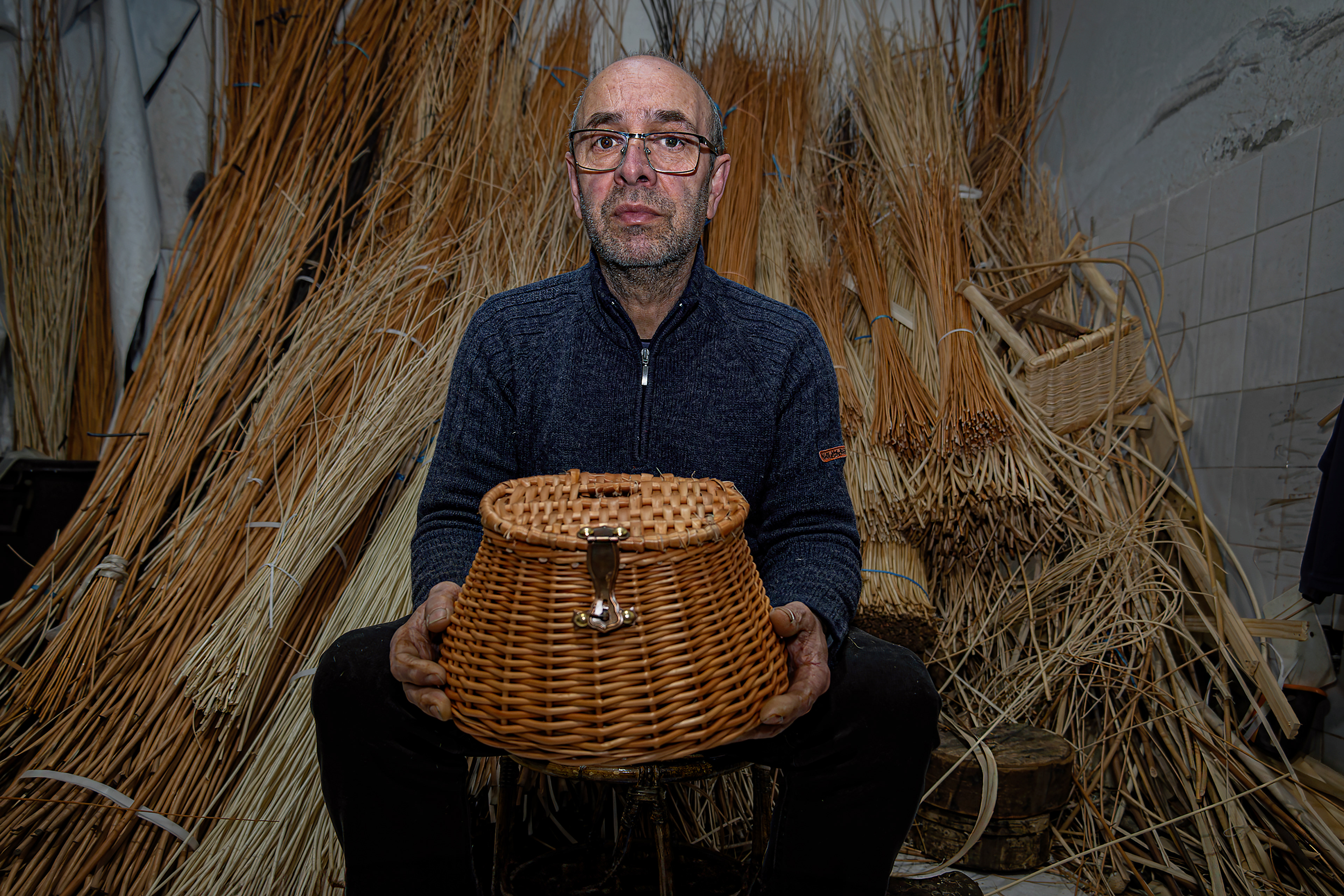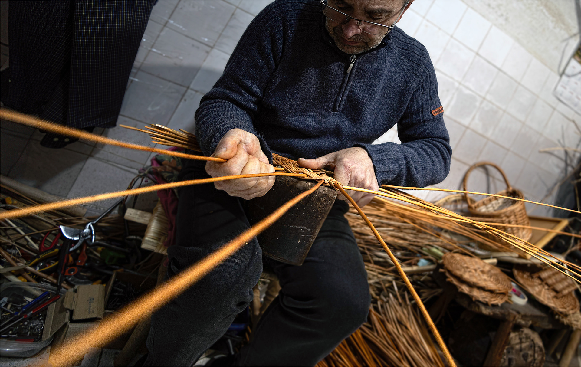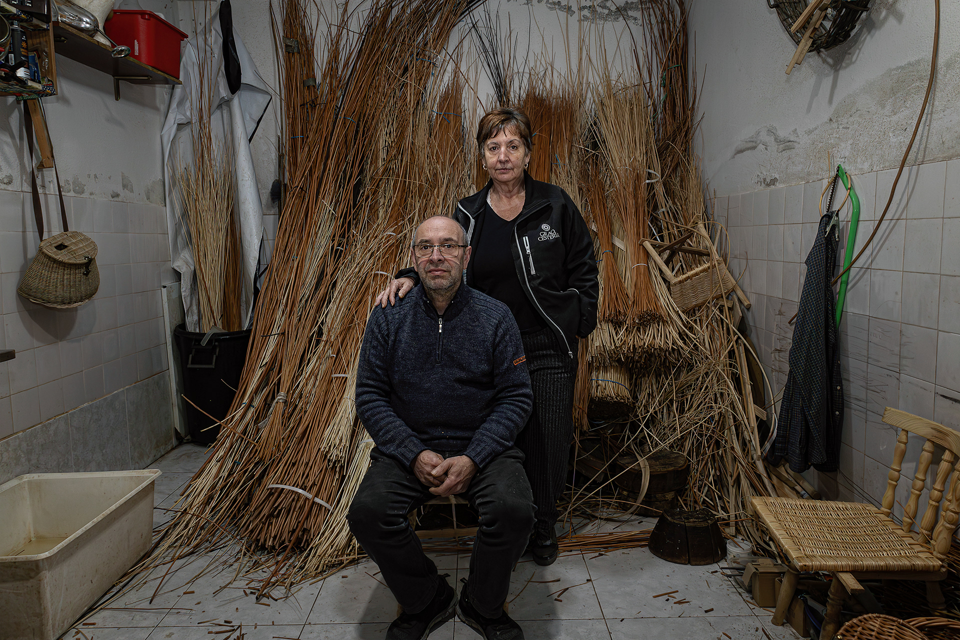 Jose y Mari son la tercera generación de cesteros en su familia. Con más de 100 años de familiar, la cestería fue fundada por su abuelo en aquellos tiempos en que el mimbre y el avellano se podían ver por todo el territorio asturiano. Esa época de bonanza fue en declive, y hoy en día, solamente pueden mantener el negocio adquiriendo la materia prima en otras comunidades autónomas.
