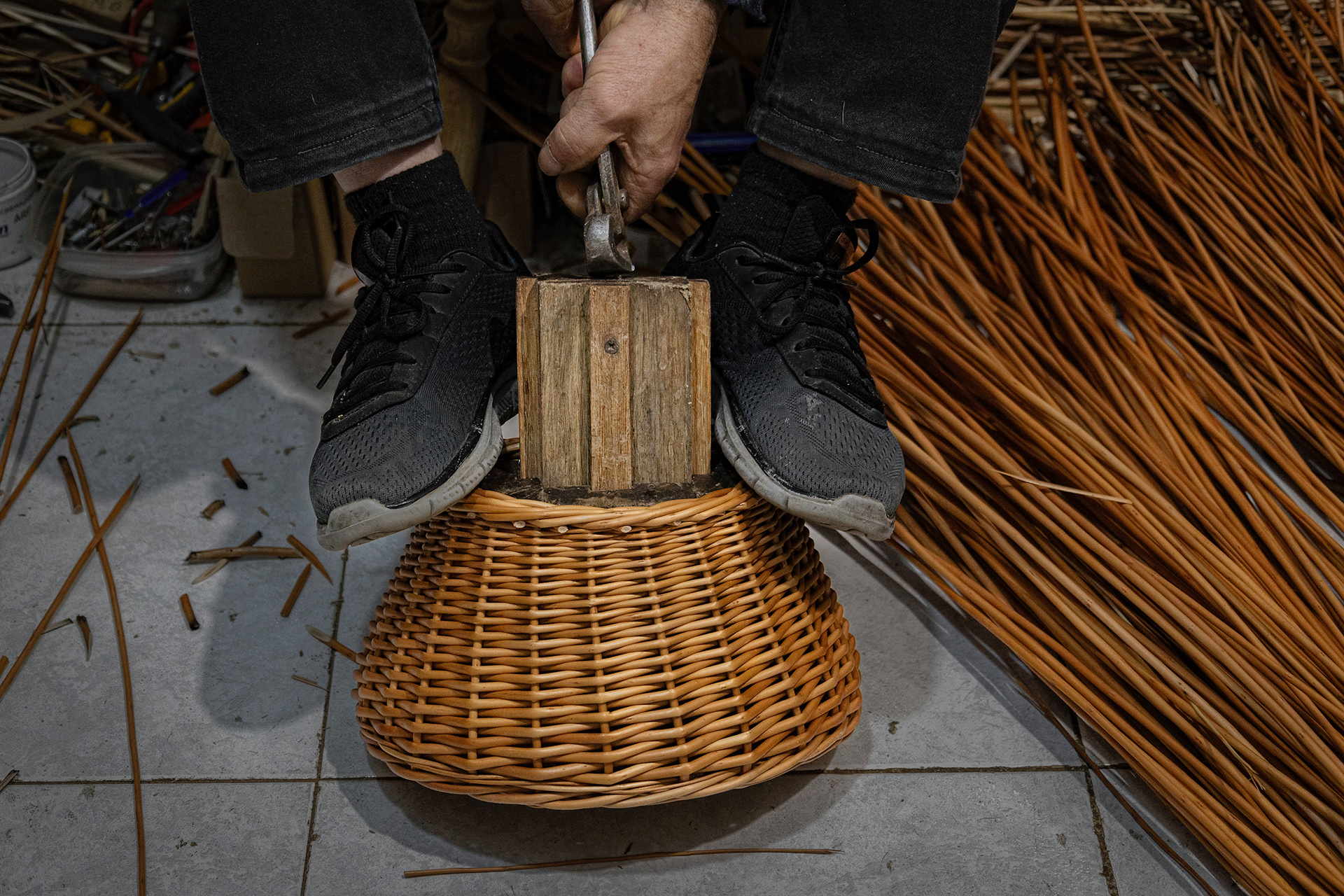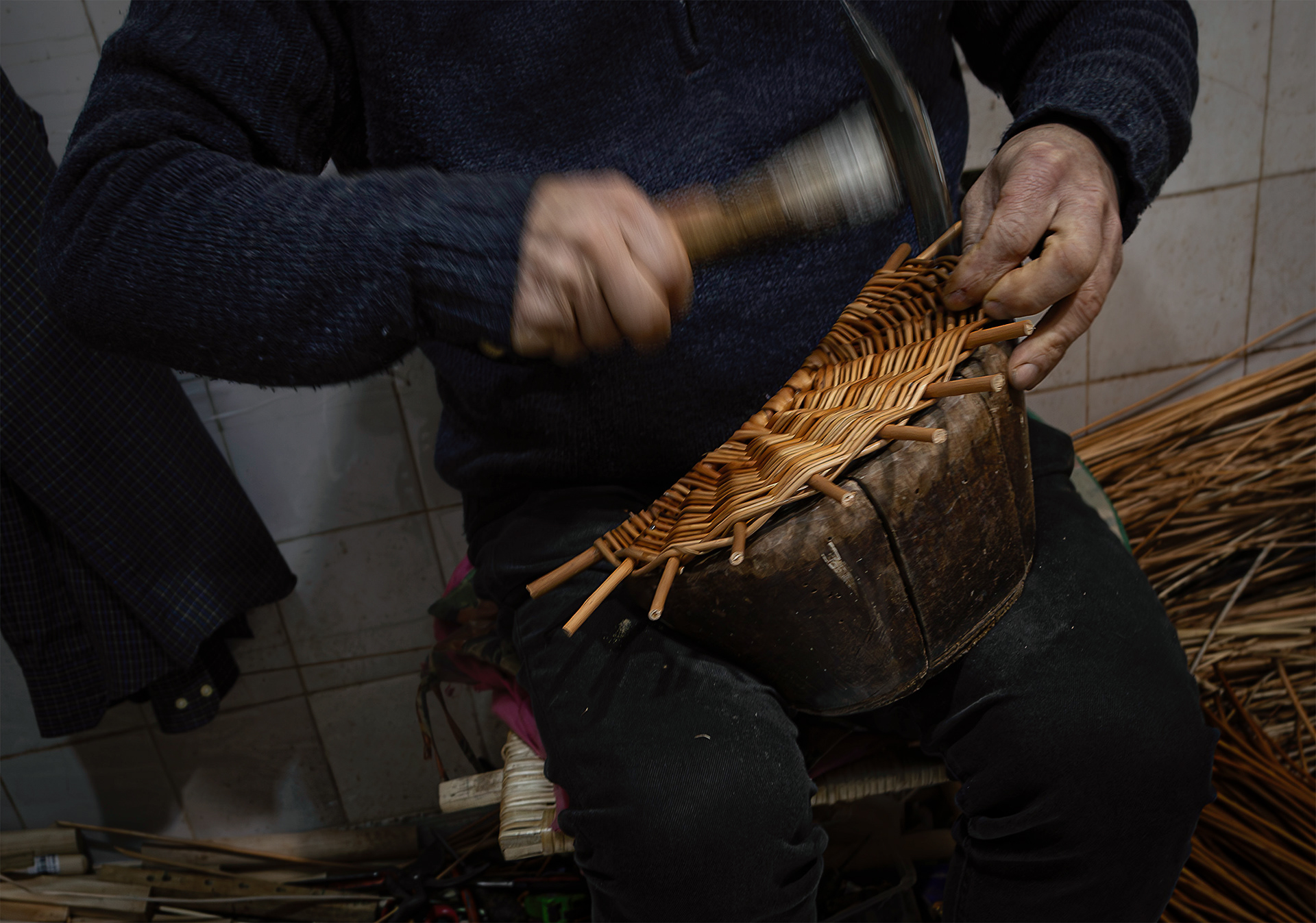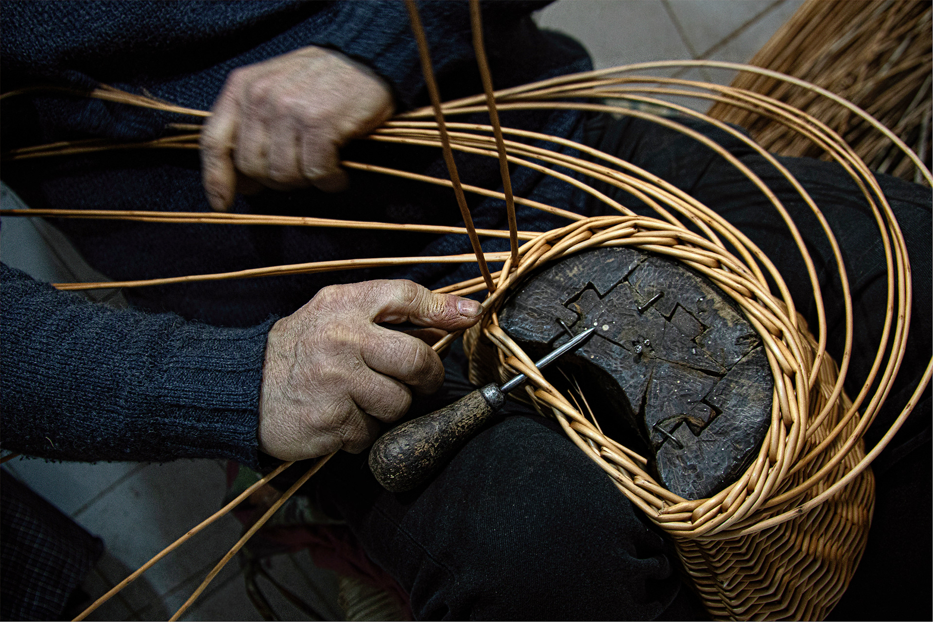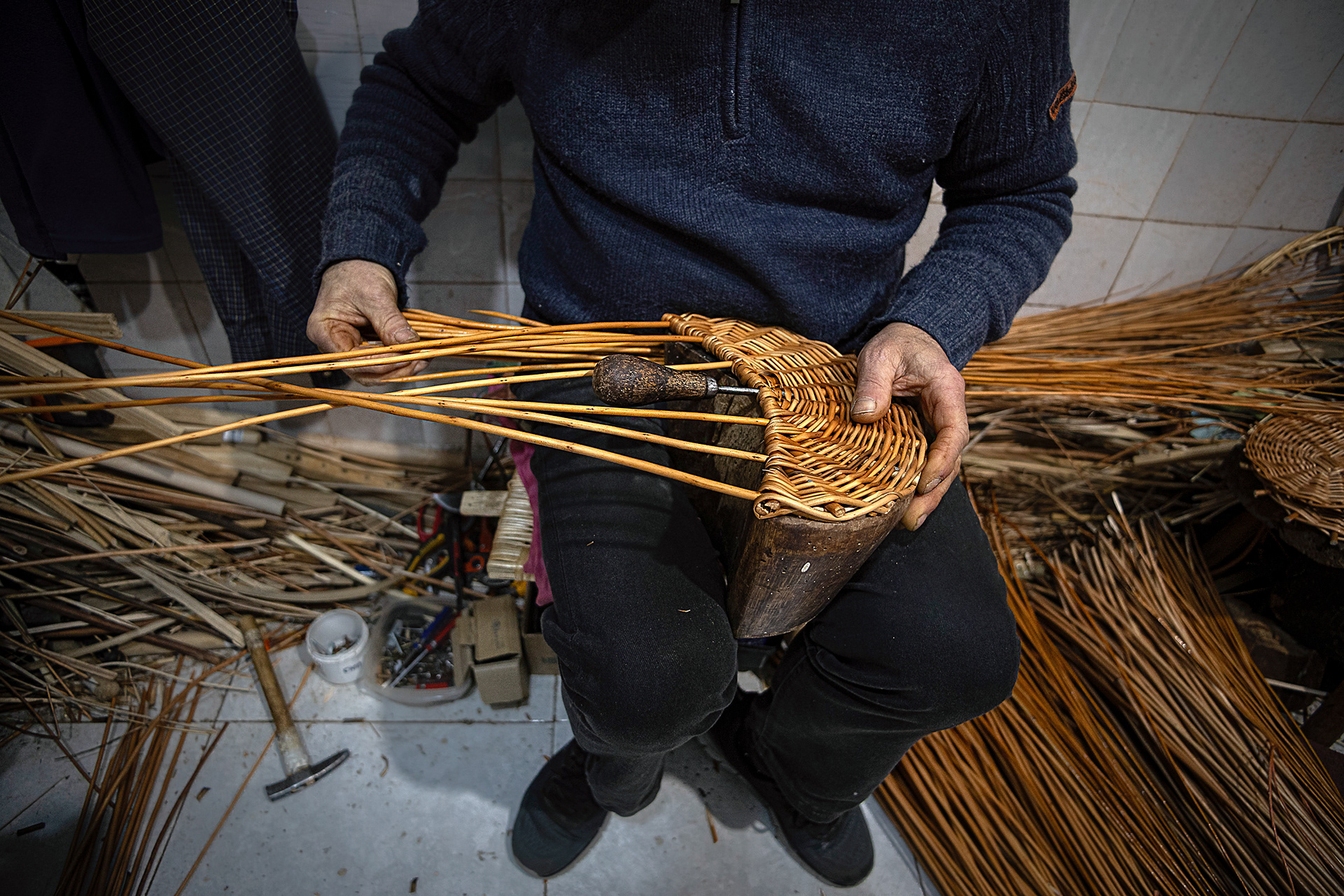 Jose y Mari son la tercera generación de cesteros en su familia. Con más de 100 años de familiar, la cestería fue fundada por su abuelo en aquellos tiempos en que el mimbre y el avellano se podían ver por todo el territorio asturiano. Esa época de bonanza fue en declive, y hoy en día, solamente pueden mantener el negocio adquiriendo la materia prima en otras comunidades autónomas.