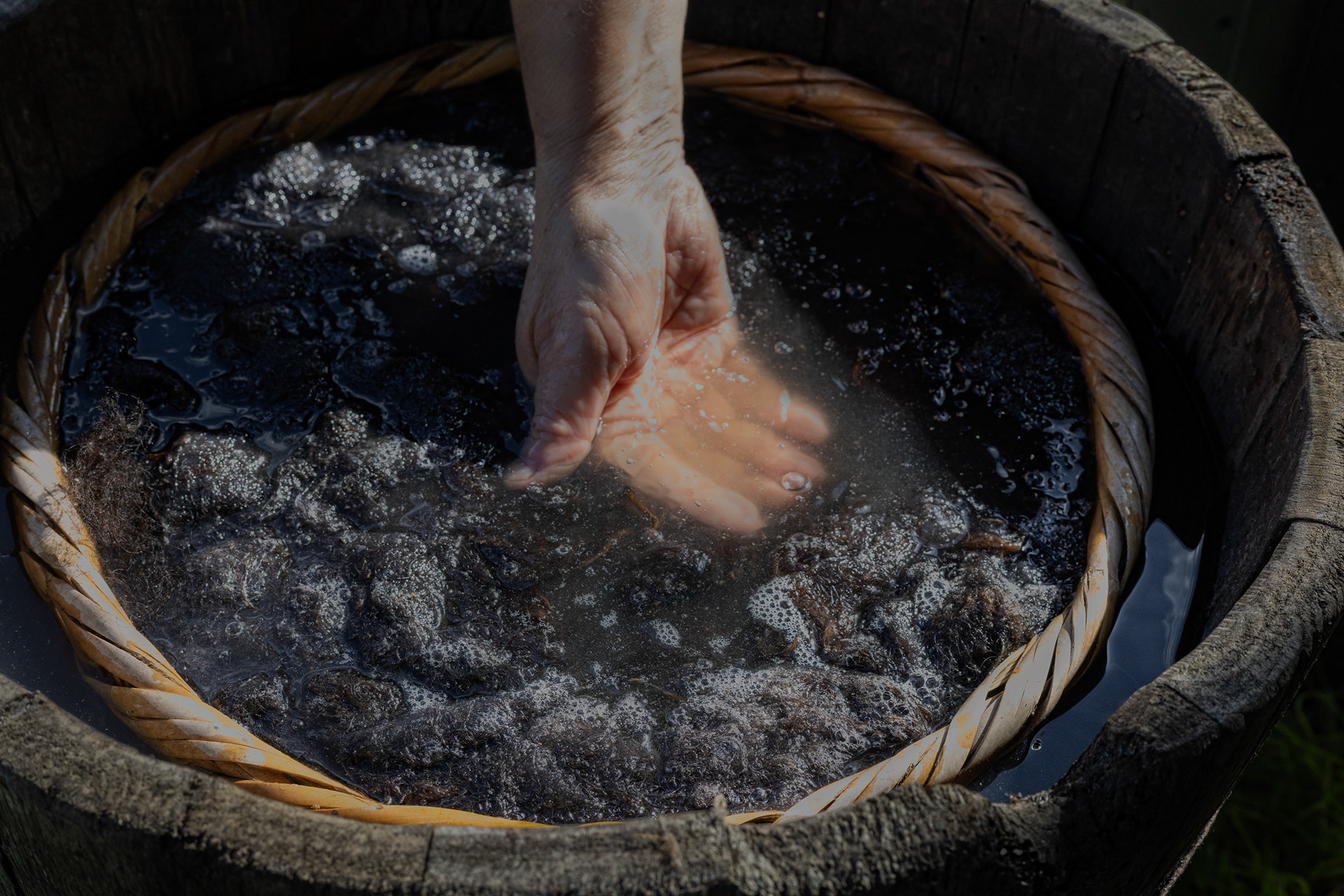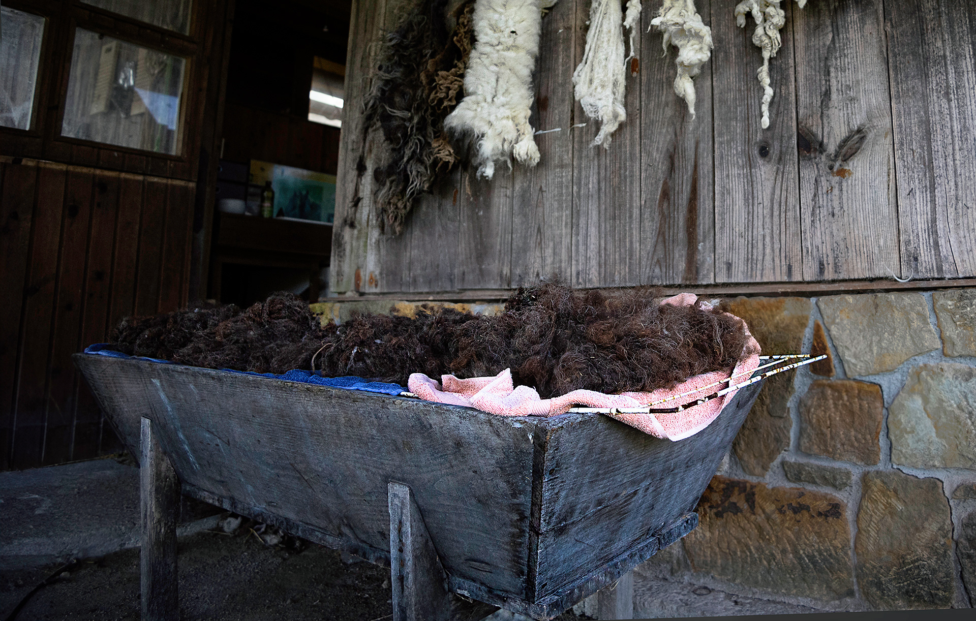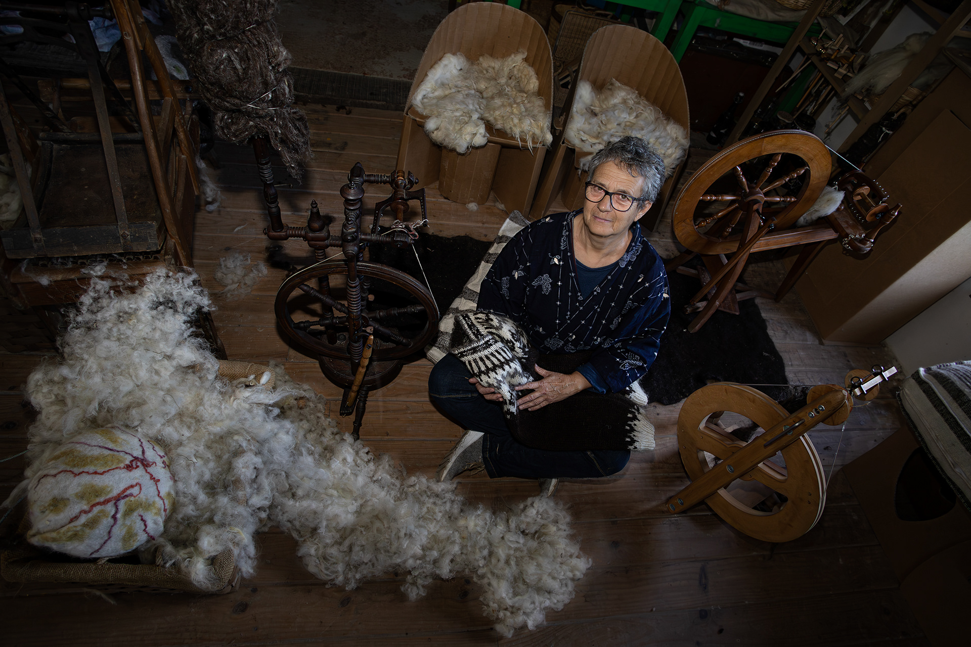 Con su propio rebaño de corderos xaldos, Danielle guía a quienes desean aprender el proceso completo: desde el escogido inicial de la lana, lavado con agua de lluvia, secado y posterior tratamiento como el paso por el “lobo” para escarmenar (soltar) la lana, hasta la cardadura de tambor o manual, con los cardadores de mano.